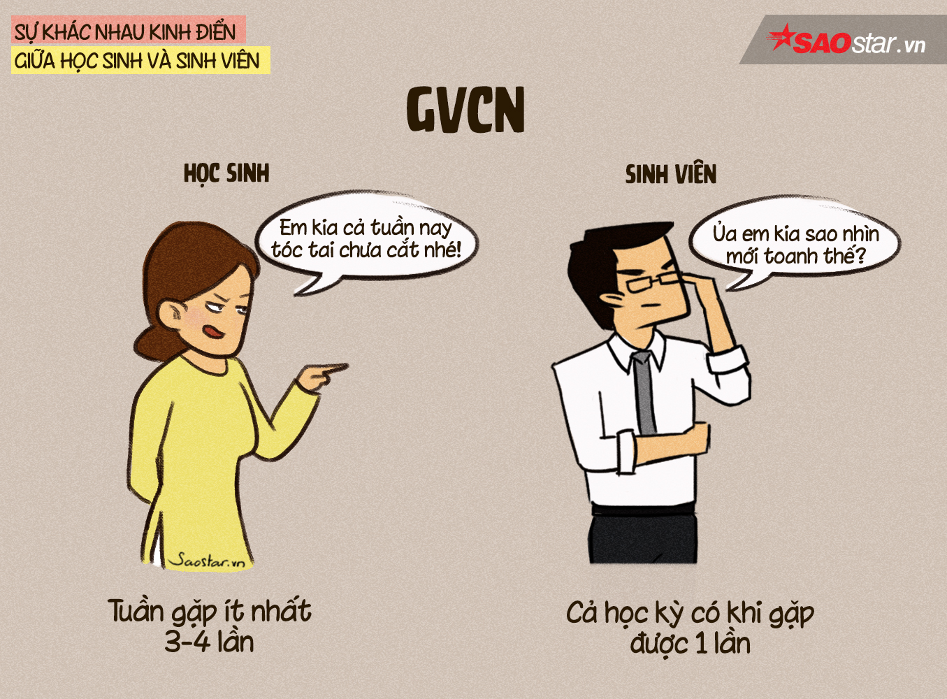 Với hình thức học tín chỉ như hiện nay, sinh viên không cần gặp GVCN thường xuyên, thậm chí kể cả lớp trưởng. Nhưng học sinh thì khác - có người phải gặp GVCN tất cả những ngày trong tuần.