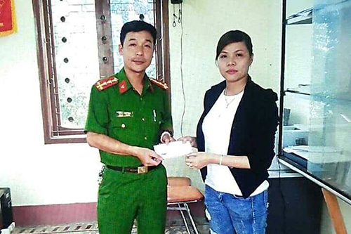 Chiều 30/11, đại úy Hoàng Thanh Sơn (công an phụ trách xã Triệu Tài, Triệu Phong, Quảng Trị) đã bàn giao số tiền ba triệu đồng cho chị Nguyễn Thị Thu Hiền (trú xã Triệu Đông, Triệu Phong) đánh rơi trước đó.
