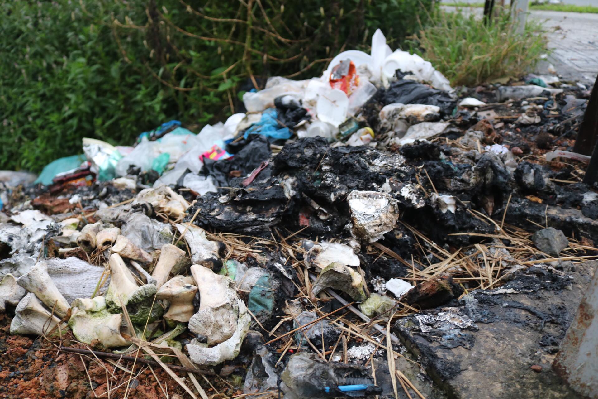 Hình ảnh không hiếm bắt gặp dọc vỉa hè. Cách thu gom, tái chế rác ở đây còn thô sơ, đa số người dân hay công nhân gom lại và đốt. Đi qua những địa điểm này, người dân phản ánh ngửi thấy mùi hôi thối. ẢNH: HOÀNG AN