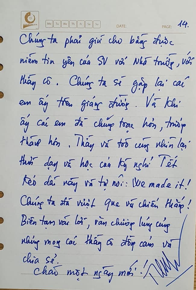Chúng ta sẽ gặp lại các em ấy trên giảng đường. Và khi ấy, các em đã chững chạc hơn, trưởng thành hơn. Thầy và trò cùng nhìn lại thời dạy và học của kỳ nghỉ Tết kéo dài này và tự nói: We made it! Chúng ta đã vượt qua và chiến thắng.