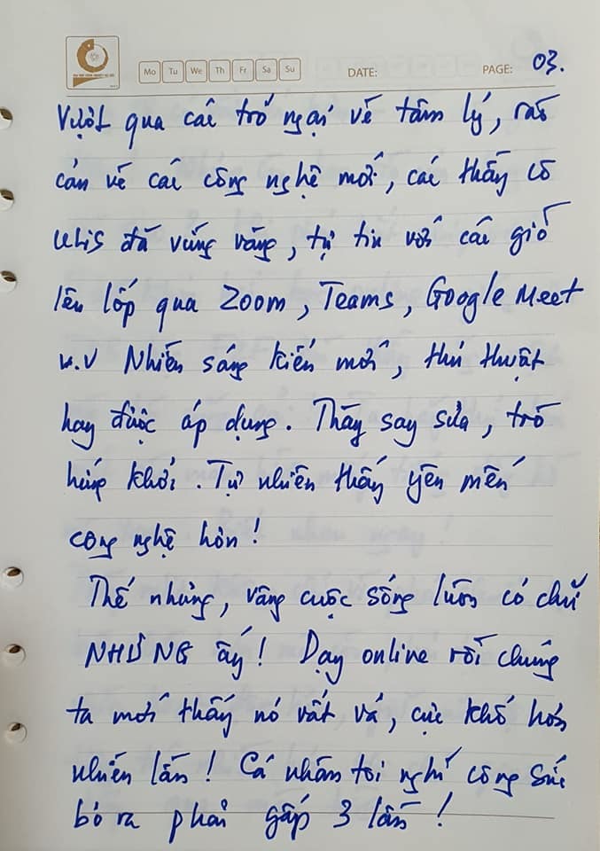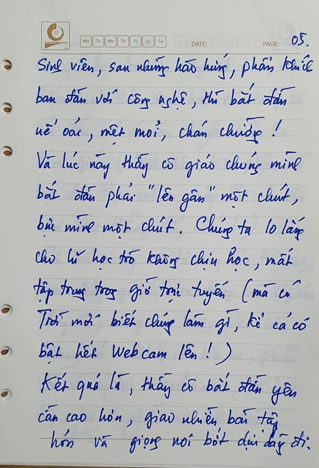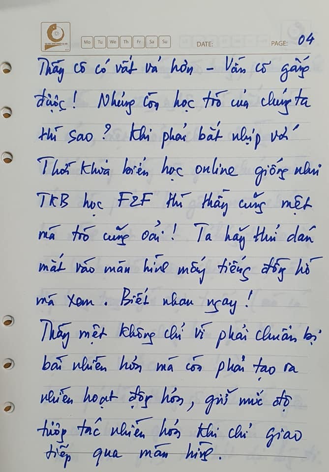 Thầy mệt không chỉ vì phải chuẩn bị bài nhiều hơn mà còn phải tạo ra nhiều hoạt động hơn, giữ mức độ tương tác nhiều hơn khi chỉ giao tiếp qua màn hình.