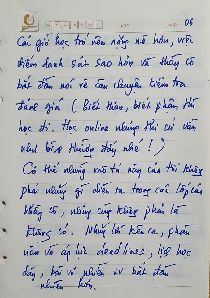 Có thể những mô tả này của tôi không phải những gì diễn ra trong các lớp của các thầy cô, nhưng cũng không phải không có. Những lời kêu ca, phàn nàn về áp lực deadlines, lịch học dày, bài vở nhiều… bắt đầu nhiều hơn.