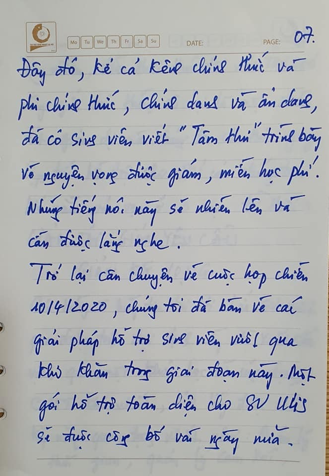 Đây đó, cả kênh chính thức và phi chính thức, chính danh và ẩn danh, đã có sinh viên viết “tâm thư” trình bày về nguyện vọng được giảm, miễn học phí. Những tiếng nói này sẽ nhiều lên và cần được lắng nghe.