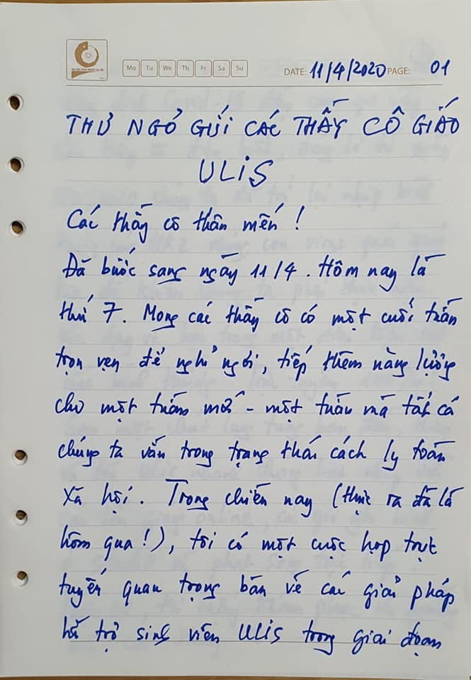 Trở lại câu chuyện về cuộc họp chiều ngày 10/4, chúng tôi đã bàn về các giải pháp hỗ trợ sinh viên vượt qua khó khăn trong giai đoạn này. Một gói hỗ trợ toàn diện cho sinh viên ULIS sẽ được công bố vài ngày nữa.
