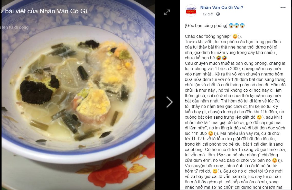 Mới đây, cô gái tên Ngọc Hân cũng vừa lên mạng xã hội than thở về cô bạn cùng phòng “trái tính trái nết”. Dù ở tập thể nhưng nữ sinh này không tôn trọng bạn cùng phòng, thường xuyên đi chơi về trễ, sinh hoạt lúc nửa đêm khiến cả phòng khó chịu.