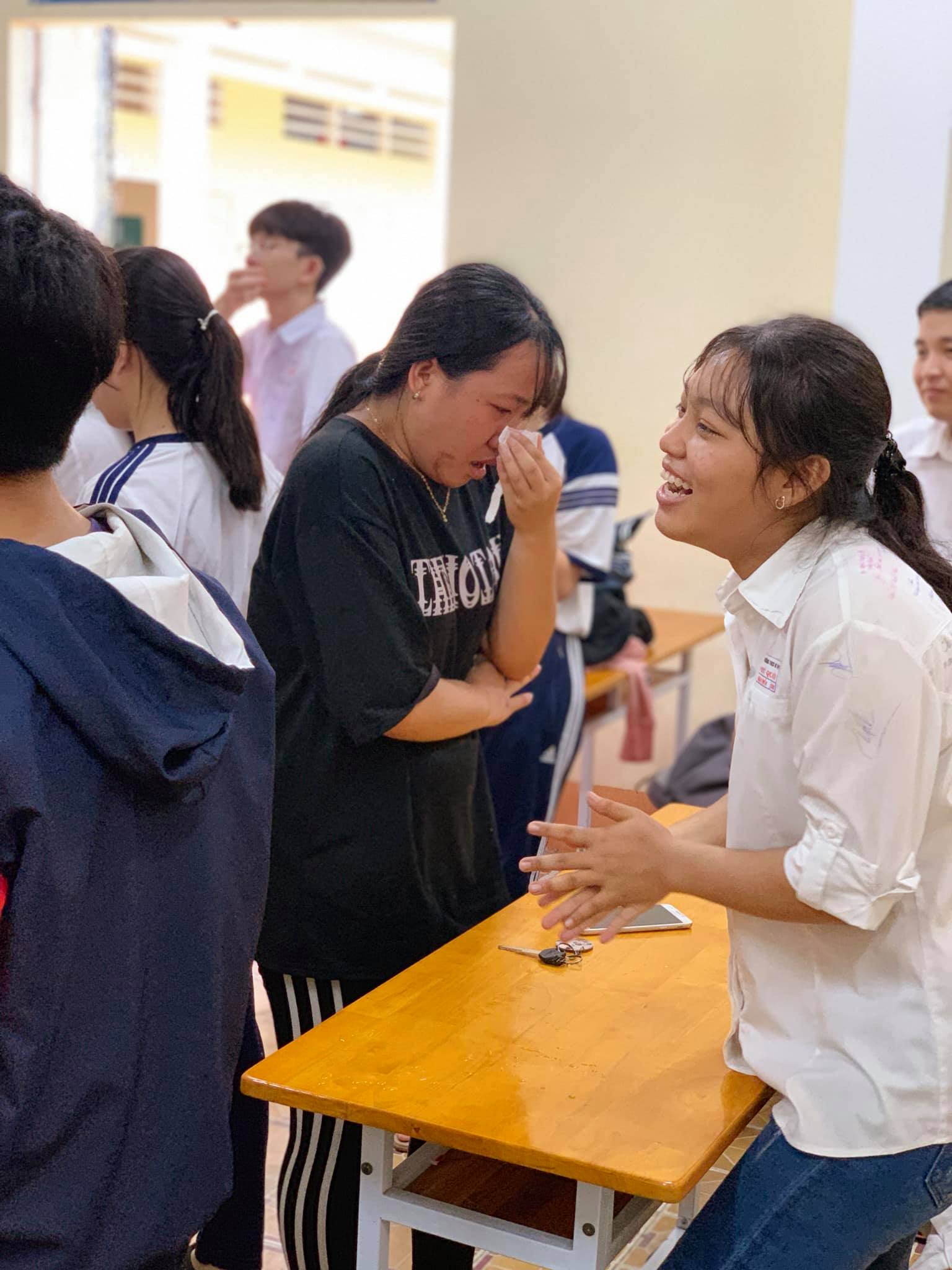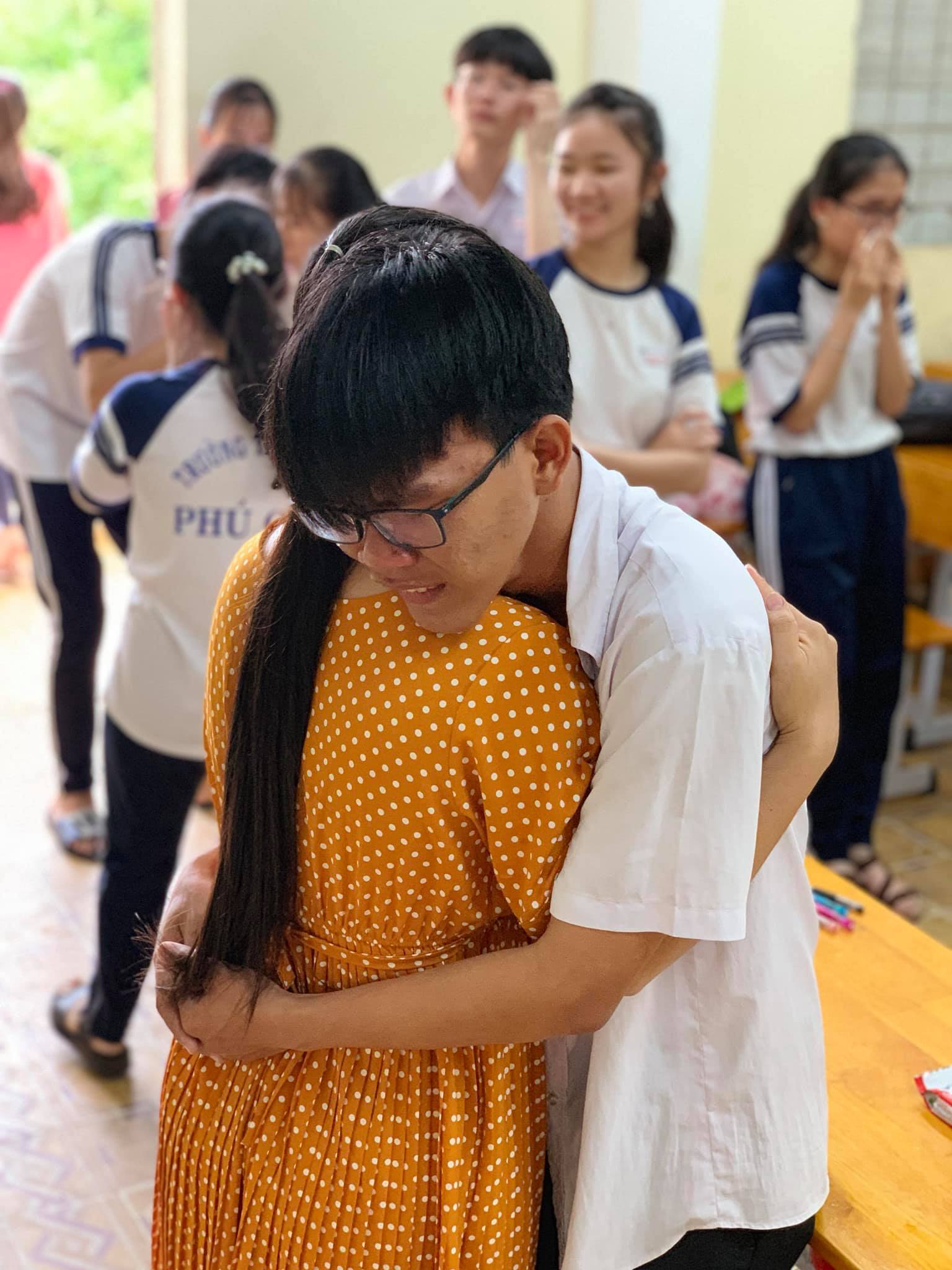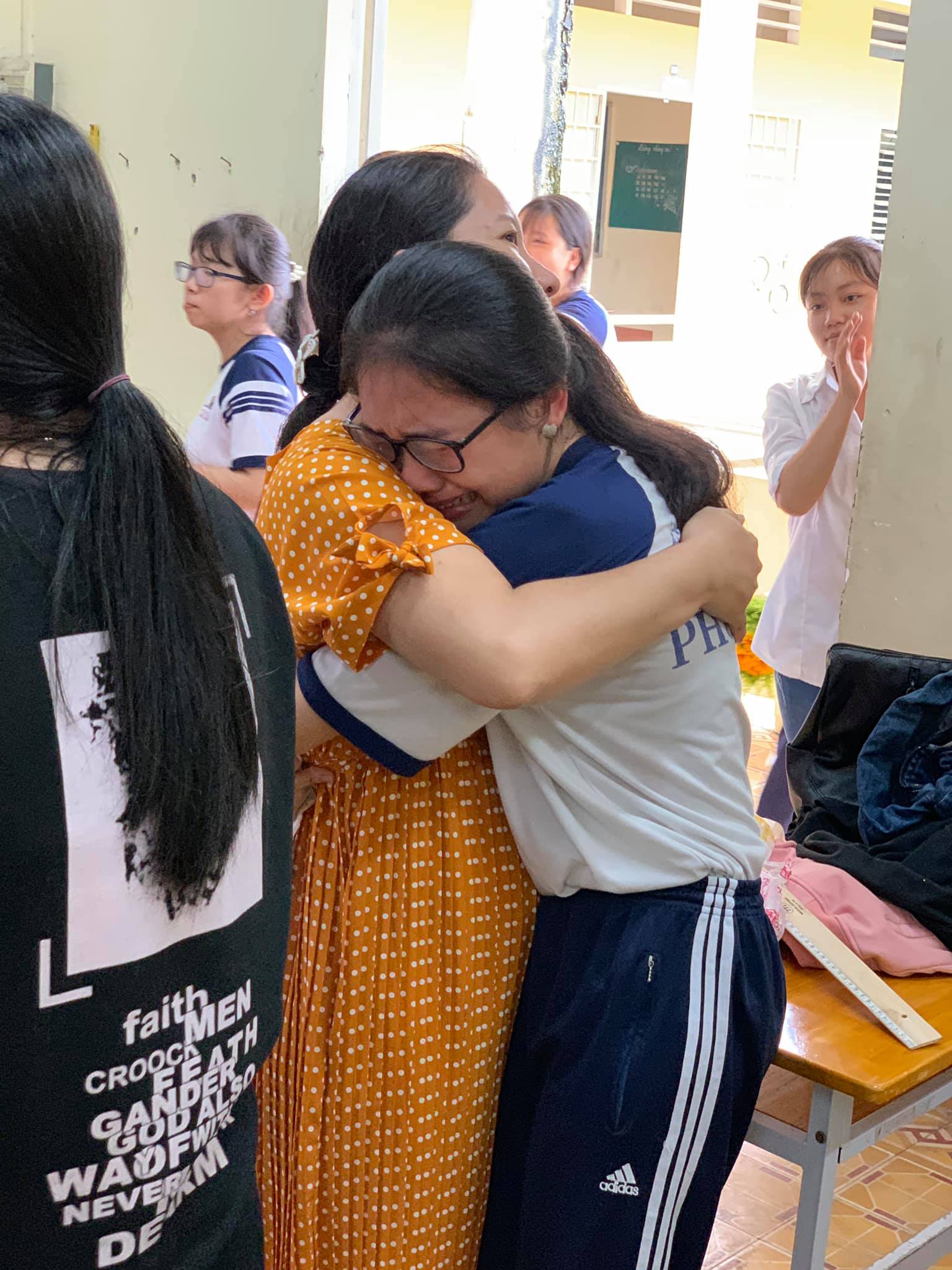 Nữ sinh ôm giáo viên khóc nức nở khiến nhiều người xúc động.