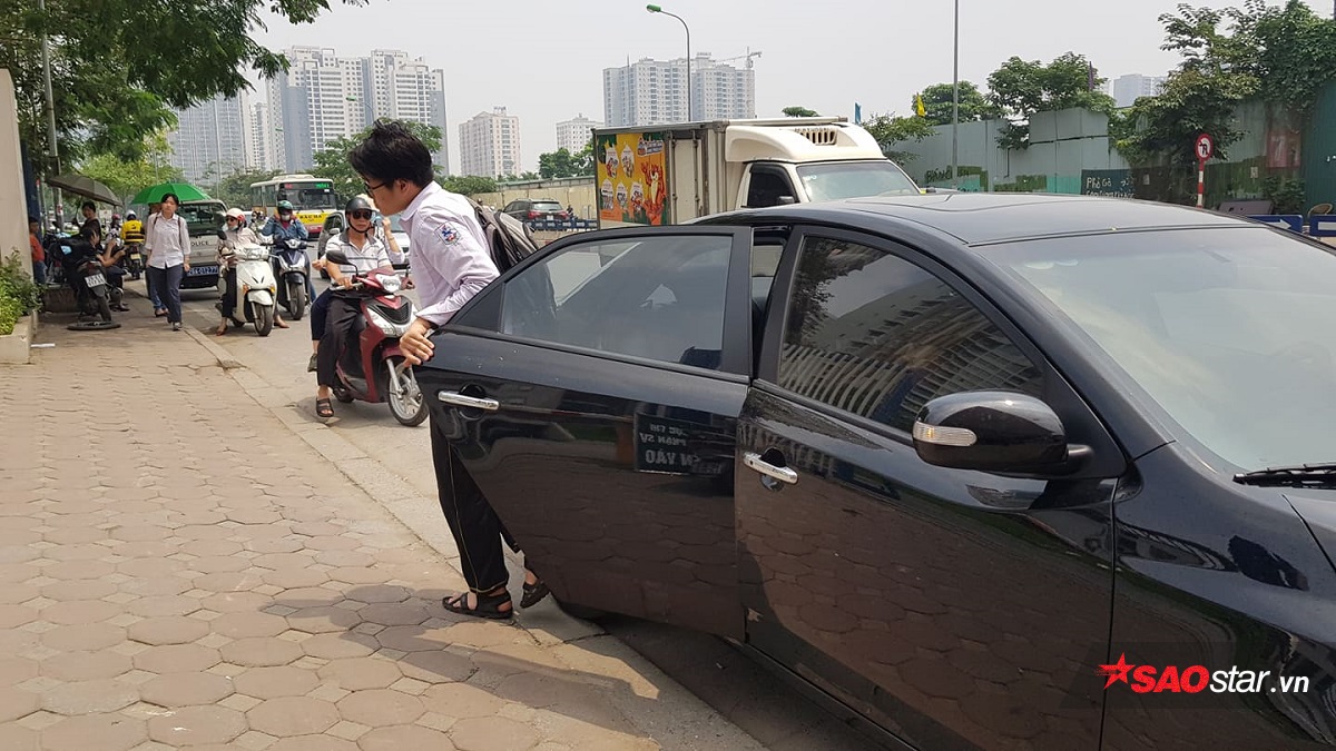 Thêm một thí sinh được bố mẹ đưa bằng ô tô đến điểm thi.