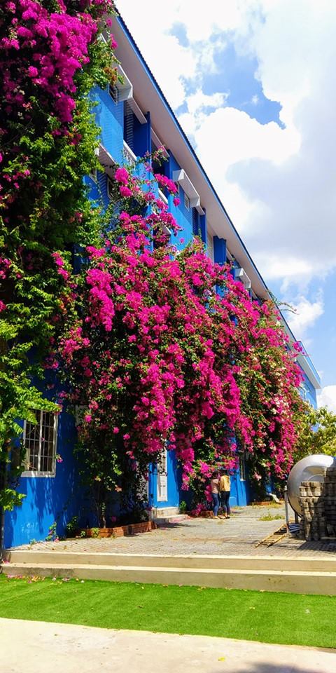 Mới đây, nhiều bạn trẻ xôn xao trước những hình ảnh check-in đẹp như mộng bên bức tường xanh lam phủ kín hoa giấy được sinh viên trường Đại học Thủ Dầu Một (Số 06 Trần Văn Ơn, phường Phú Hòa, TP Thủ Dầu Một, Bình Dương) chia sẻ trên mạng xã hội.