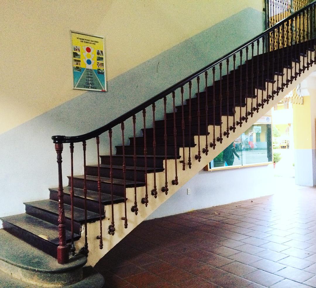 Chiếc cầu thang sắt cổ trăm tuổi đã gánh bao bước chân sinh viên vẫn còn nguyên vẹn.