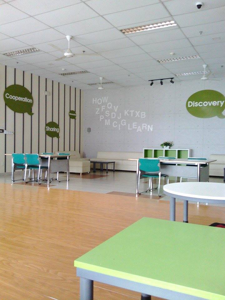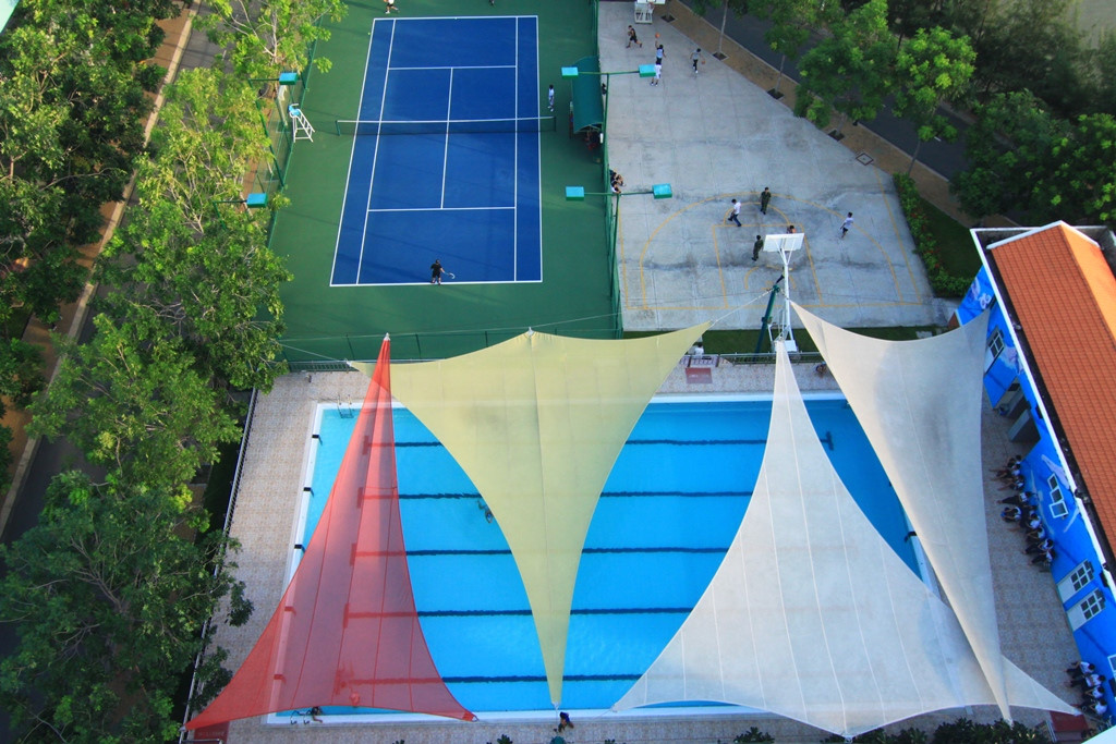 Đầy đủ tiện nghi như thang máy lên các tầng, sân thể thao nằm kế bên, ở đây còn có cả một không gian xanh với hồ nước lớn tạo cảm giác bình yên và giải toả căng thẳng sau giờ học.