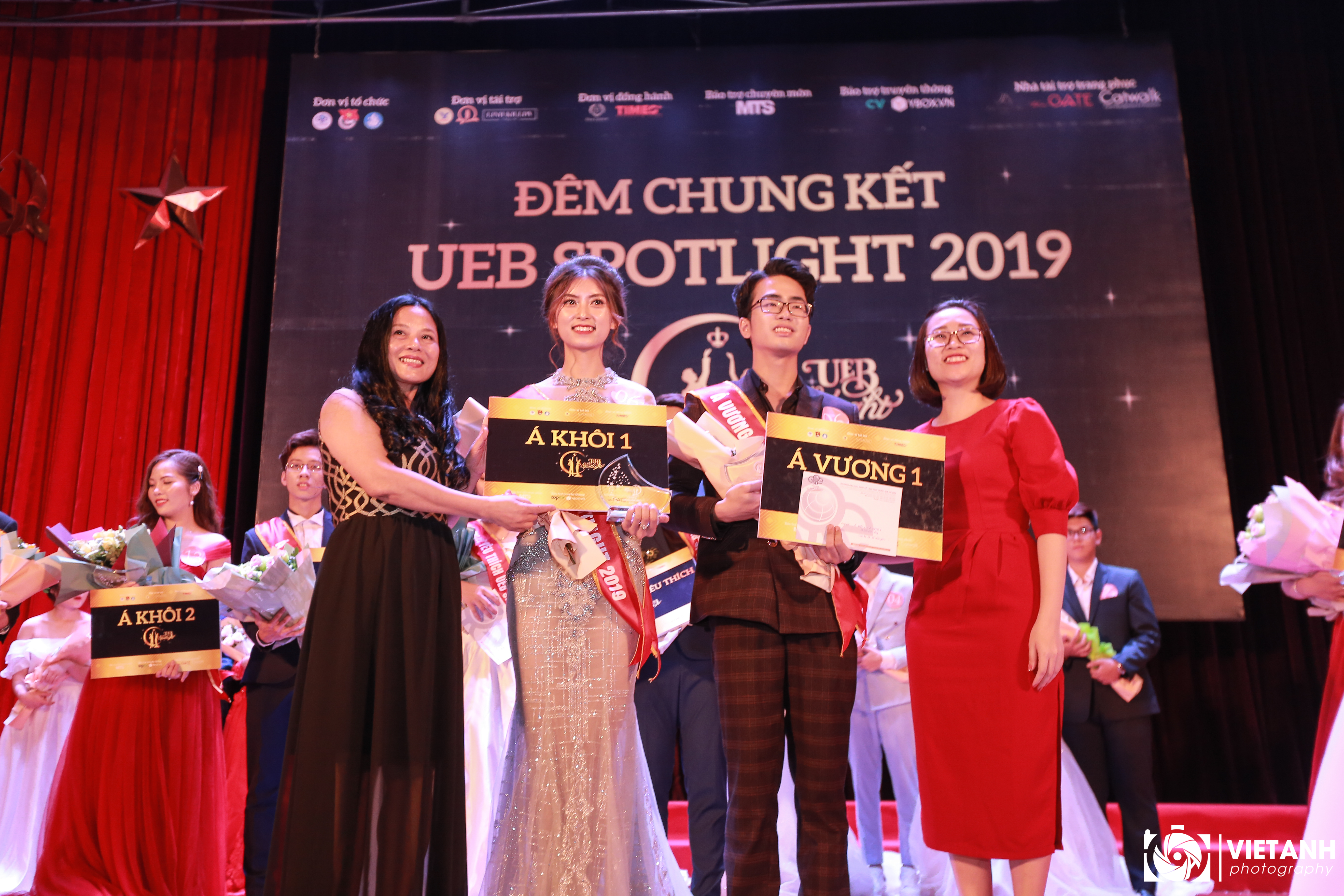 Xuất sắc vượt qua các cặp đôi thí sinh khác với câu trả lời ứng xử thông minh, khéo léo, danh hiệu Tân Hoa khôi và Nam vương của trường UEB đã gọi tên cặp đôi thí sinh mang SBD 08: Đỗ Ngọc Hân và Doãn Bảo Long.
