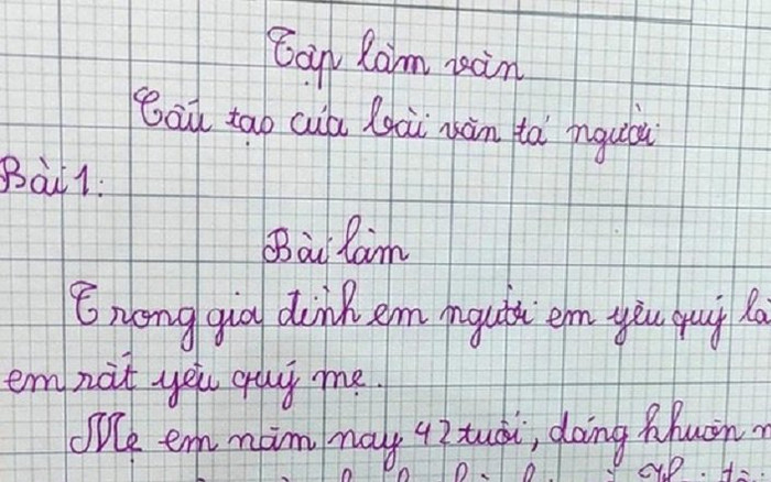 Mới đây, dân mạng lại được dịp "thưởng thức" một bài văn tả về mẹ của một học sinh tiểu học. Những chi tiết về hình dáng, khuôn mặt của mẹ được cậu bé này miêu tả khá ngộ nghĩnh, thậm chí còn có gì đó "sai sai".