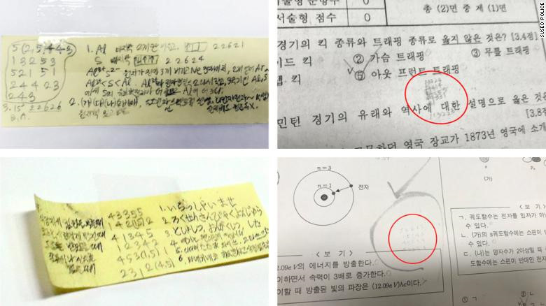 Theo đó, thông qua việc điều tra, cảnh sát đã phát hiện ra nhiều tờ giấy ghi chú cùng một cuốn sổ tay nhỏ có ghi những con số đáng ngờ, nhiều tờ giấy thi sạch sẽ nhưng có ghi những cột số đáp án ở đằng sau. Trước đó, nhiều học sinh cũng phát hiện hai chị em sinh đôi điên cuồng đọc thuộc một mẩu giấy trước kỳ thi và sau đó viết một chuỗi những dãy số ra rồi chép vào bài làm.