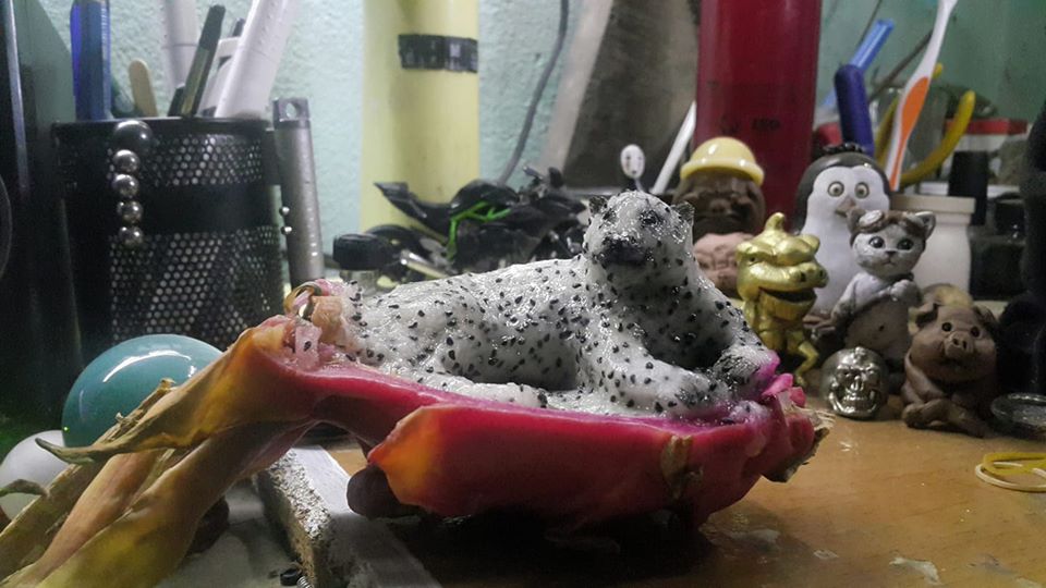 Theo như chia sẻ của nam sinh Quang Bình, do ở nhà quá rảnh rỗi nên cậu đã tạo hình con bạch hổ trên quả thanh long.