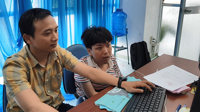 Tiến đang thực tập tại Sở TT-TT tỉnh Phú Yên. Ảnh: ĐỨC HUY