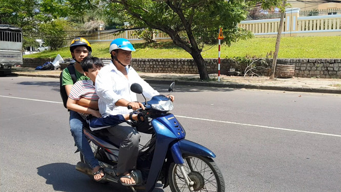 Tiến đi học phải có 2 người đưa đi bằng xe máy. Ảnh: ĐỨC HUY