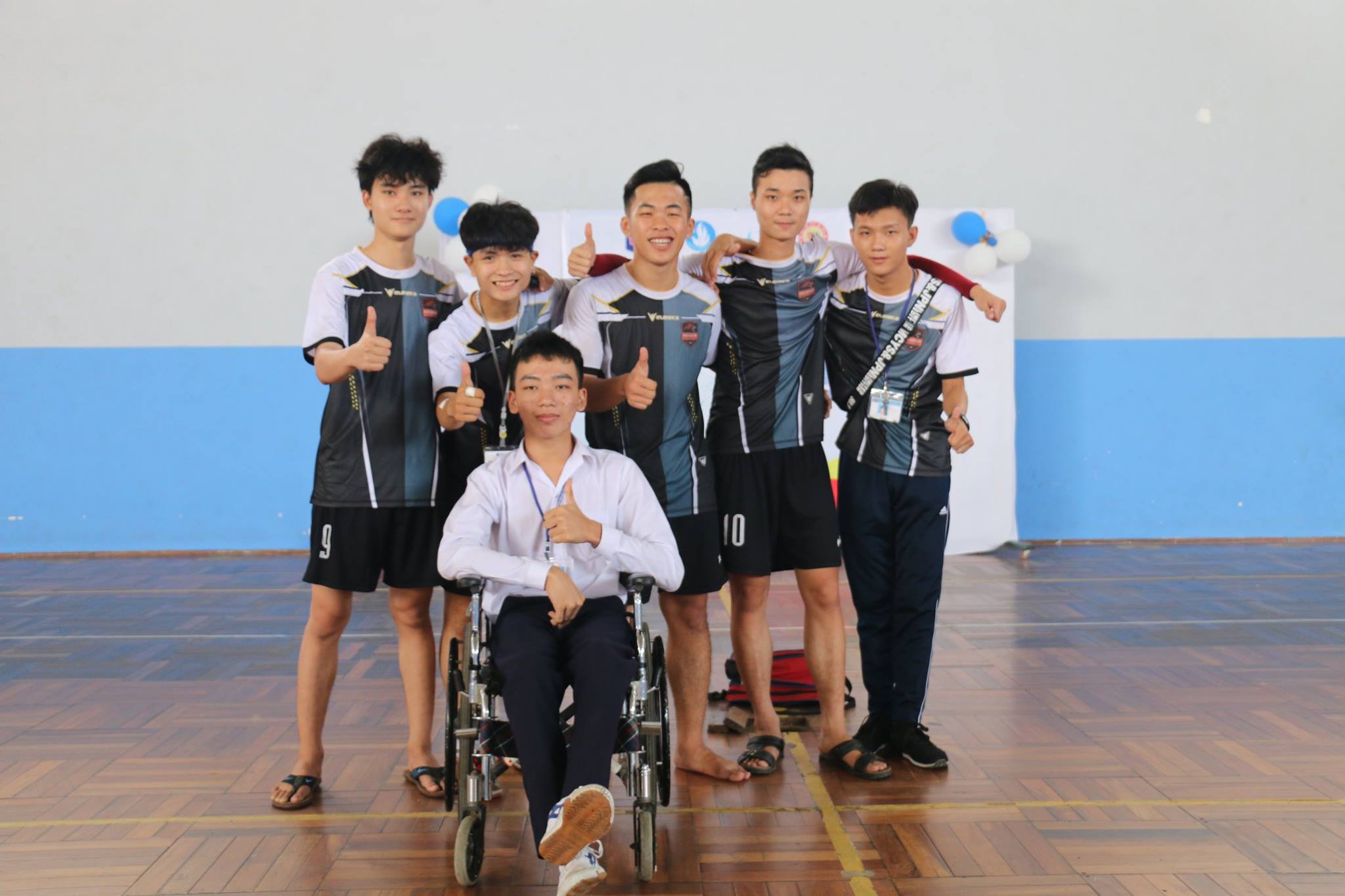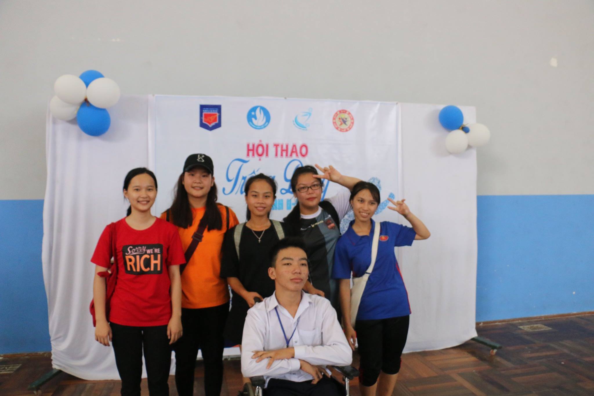 Dù đôi chân khuyết tật, không thể tham gia thể thao như các bạn, nhưng Tấn Anh vẫn có mặt để cổ vũ tinh thần các thành viên trong lớp tại các buổi thi đấu thể thao.