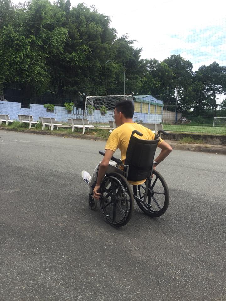 Chiếc xe lăn là “người bạn” đồng hành cùng Tấn Anh suốt nhiều năm nay.