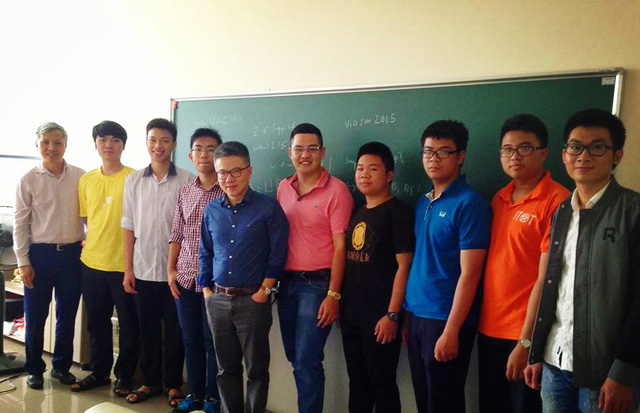 Tài (áo hồng) gặp gỡ GS. Ngô Bảo Châu và CLB Toán học Nuôi dưỡng nhân tài.