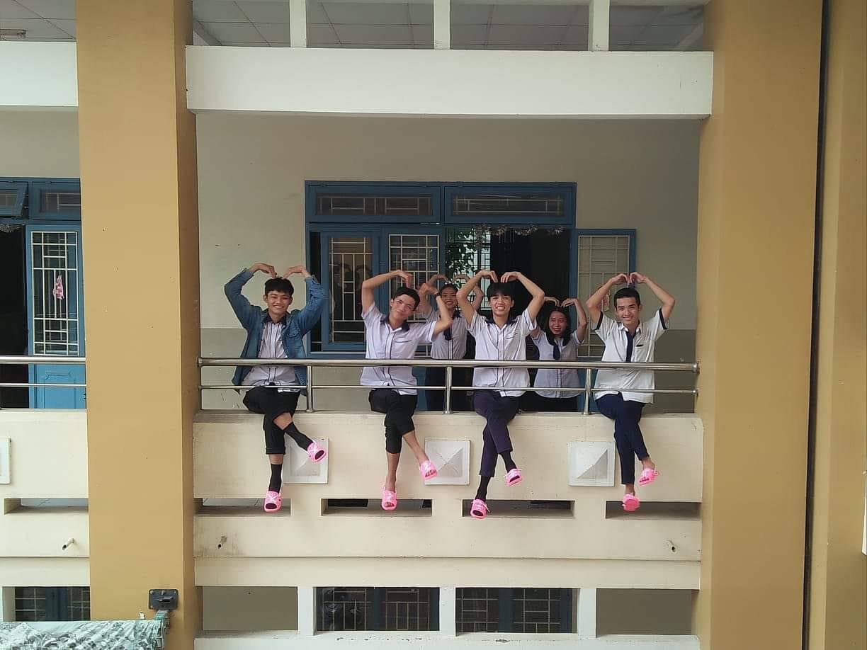 Đáng chú ý, các bạn nam sinh còn có biểu cảm đáng yêu với 2 cánh tay giơ lên làm thành hình trái tim rất “giả nice”.