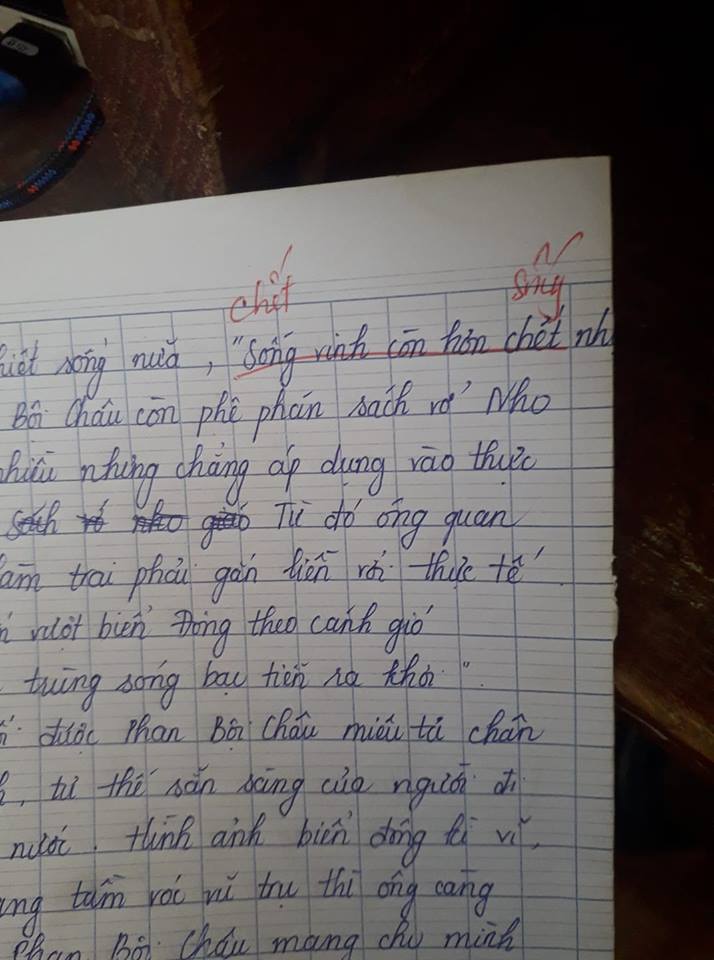Cụ thể, khi dùng thành ngữ “chết vinh còn hơn sống nhục”, học sinh liền chế tác thành “sống vinh còn hơn chết nhục”. Câu thành ngữ bị viết sai làm thay đổi ý nghĩa vốn có của nó. Tuy nhiên, đọc thành ngữ học sinh mới sáng tạo ra, ai nấy đều không nhịn được cười.