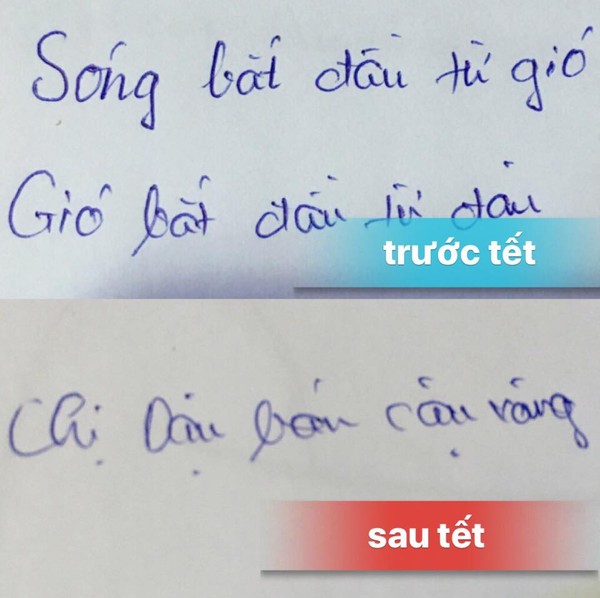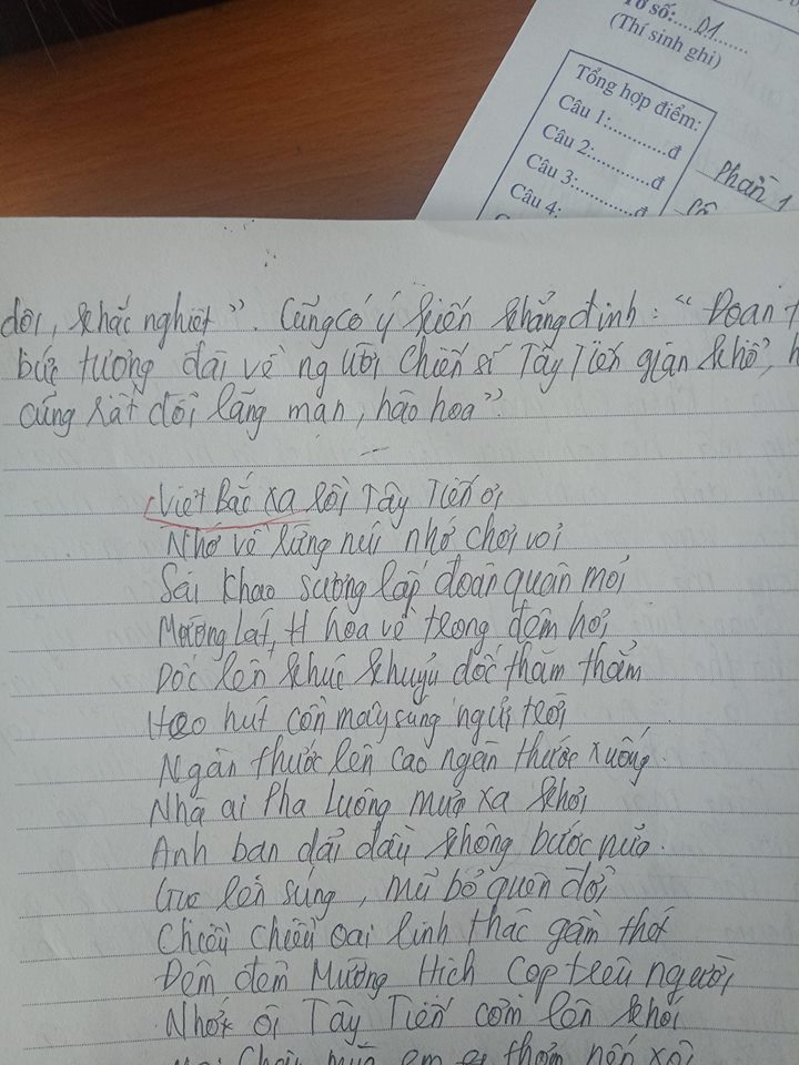 Một thành viên khác cũng chia sẻ bức ảnh chụp bài kiểm tra khi chép lại đoạn thơ “Sông Mã xa rồi Tây Tiến ơi” lại biến tấu thành “Việt Bắc xa rồi Tây Tiến ơi”, hoặc một bức ảnh khác chụp học sinh nhầm lẫn từ bài thơ Sóng của Xuân Quỳnh sang tác phẩm Tắt đèn của Ngô Tất Tố.
