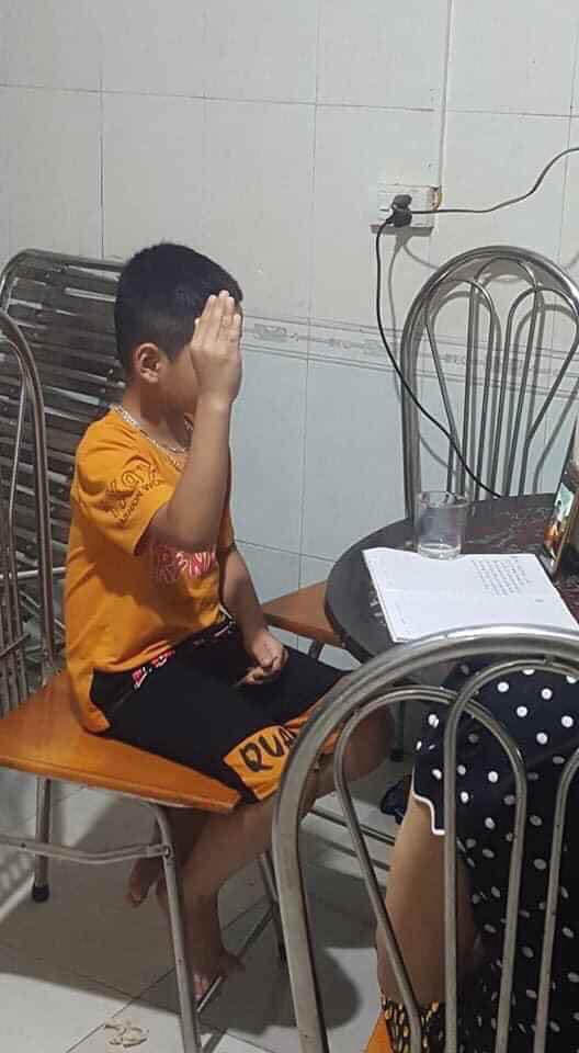 Lý giải cho bức ảnh này, tài khoản đăng tải ghi chú: “Tình hình là cháu tôi nó giơ tay 30 phút rồi mà vẫn chưa thấy cô giáo gọi”. Cũng dễ hiểu khi cậu bé này đang tham gia lớp học trực tuyến, và giơ tay phát biểu hay có ý kiến cũng là một chuyện vô cùng đơn giản, dễ hiểu.