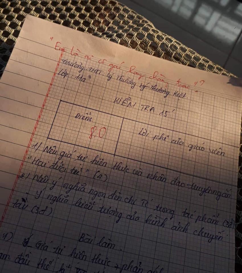 Lời phê “bá đạo” trên bài kiểm tra đến từ một vị giáo viên. Ảnh: Huỳnh Tâm Như/Group Trường Người Ta