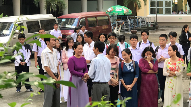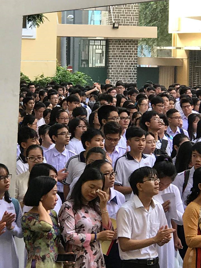 Sáng nay, 4.10, Hiệu trưởng trường THPT Chuyên Trần Đại Nghĩa - ông Lâm Triều Nghi đã có buổi lễ chia tay học trò và các thầy cô trong trường. Giờ phút chia xa, hàng nghìn người đã bật khóc nức nở.