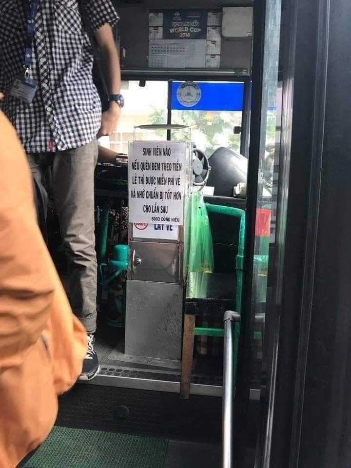 Dòng thông báo được ghi rõ bằng cách in hoa tô đậm: “Sinh viên nào nếu quên đem theo tiền lẻ thì được miễn phí vé và nhớ chuẩn bị tốt hơn cho lần sau”, những tưởng nội dung sẽ rất khó nghe nhưng hóa ra lại dễ thương vô bờ bến. Bức ảnh chụp lời nhắn nhủ đáng yêu ấy ngay sau khi vừa được đăng tải đã thu hút rất nhiều sự chú ý của cộng đồng mạng.