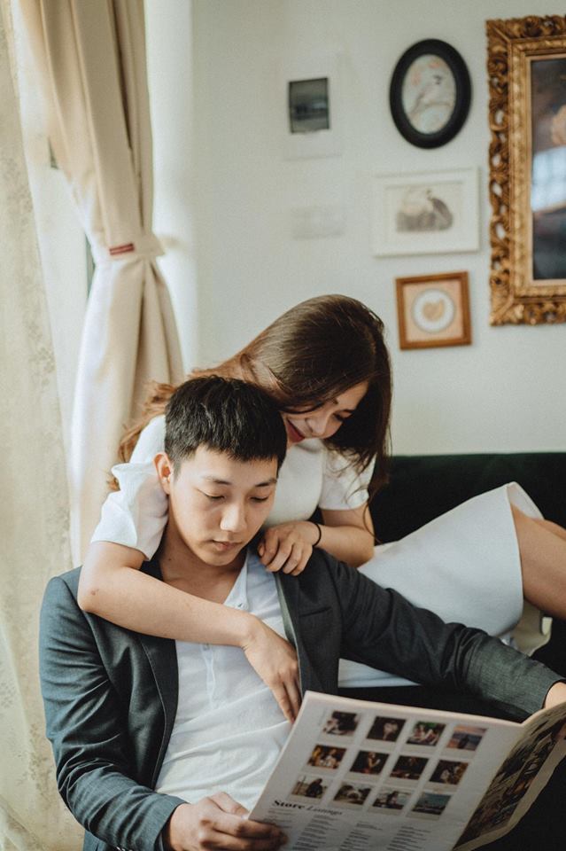 “Mình thấy cưới 1 anh đầu bếp vừa vui mà cũng vừa sợ. Vui là thi thoảng được ăn ngon, đầu bếp lại rất sạch sẽ kĩ tính nên nhiều khi anh dọn dẹp nhà rất gọn gàng. Còn sợ là nhiều khi anh ấy nghĩ ra mấy món ăn mới, mình luôn phải làm chuột bạch ăn thử và … không dám chê!” - Ái Thơ cho biết.