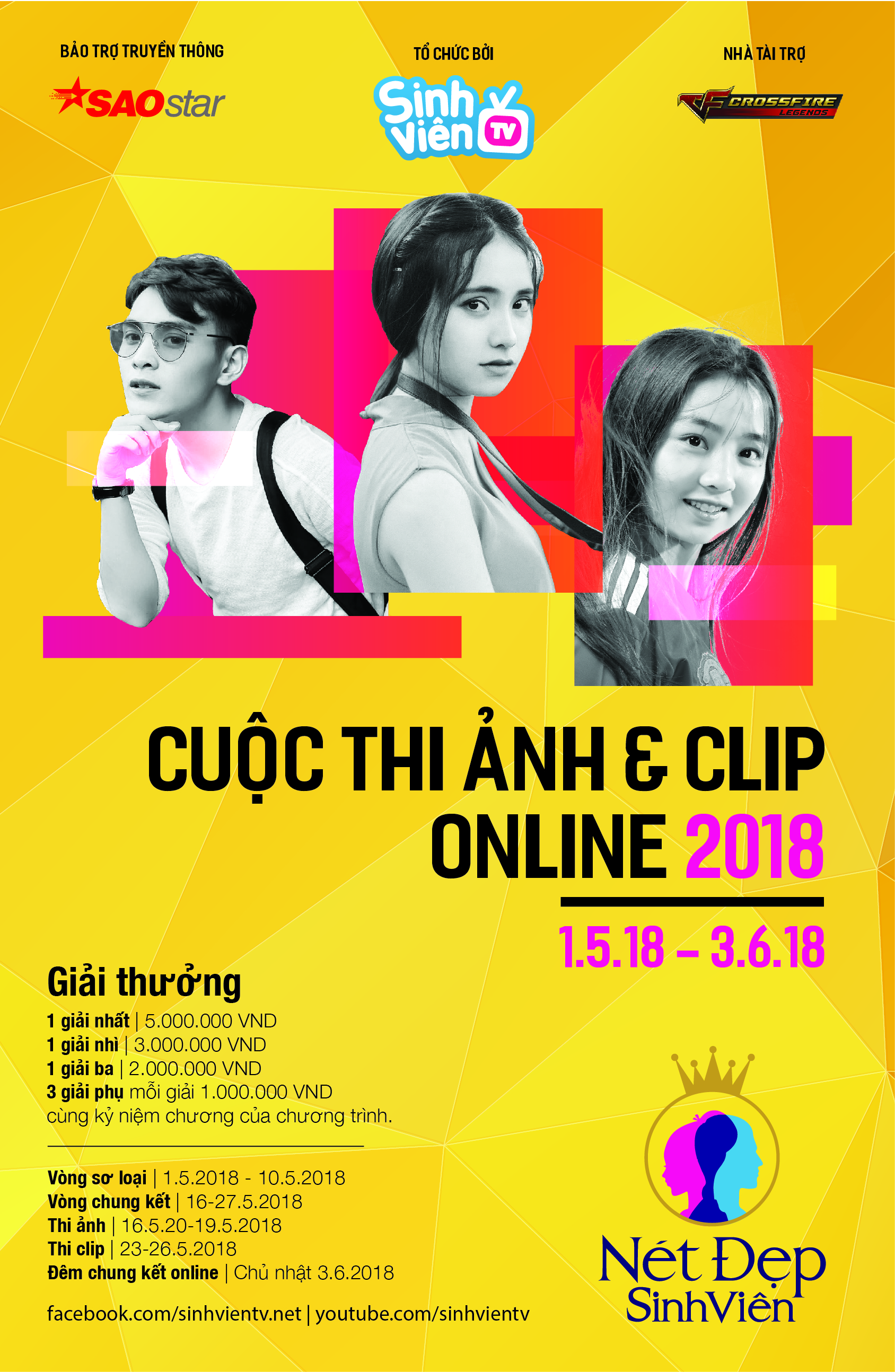 Với tổng giải thưởng lên đến 15 triệu đồng cùng kỉ niệm chương, “Nét đẹp sinh viên 2018” hứa hẹn sẽ là một sân chơi bổ ích, giúp giải tỏa căng thẳng, áp lực học hành cho tất cả các bạn sinh viên năng động trên cả nước.