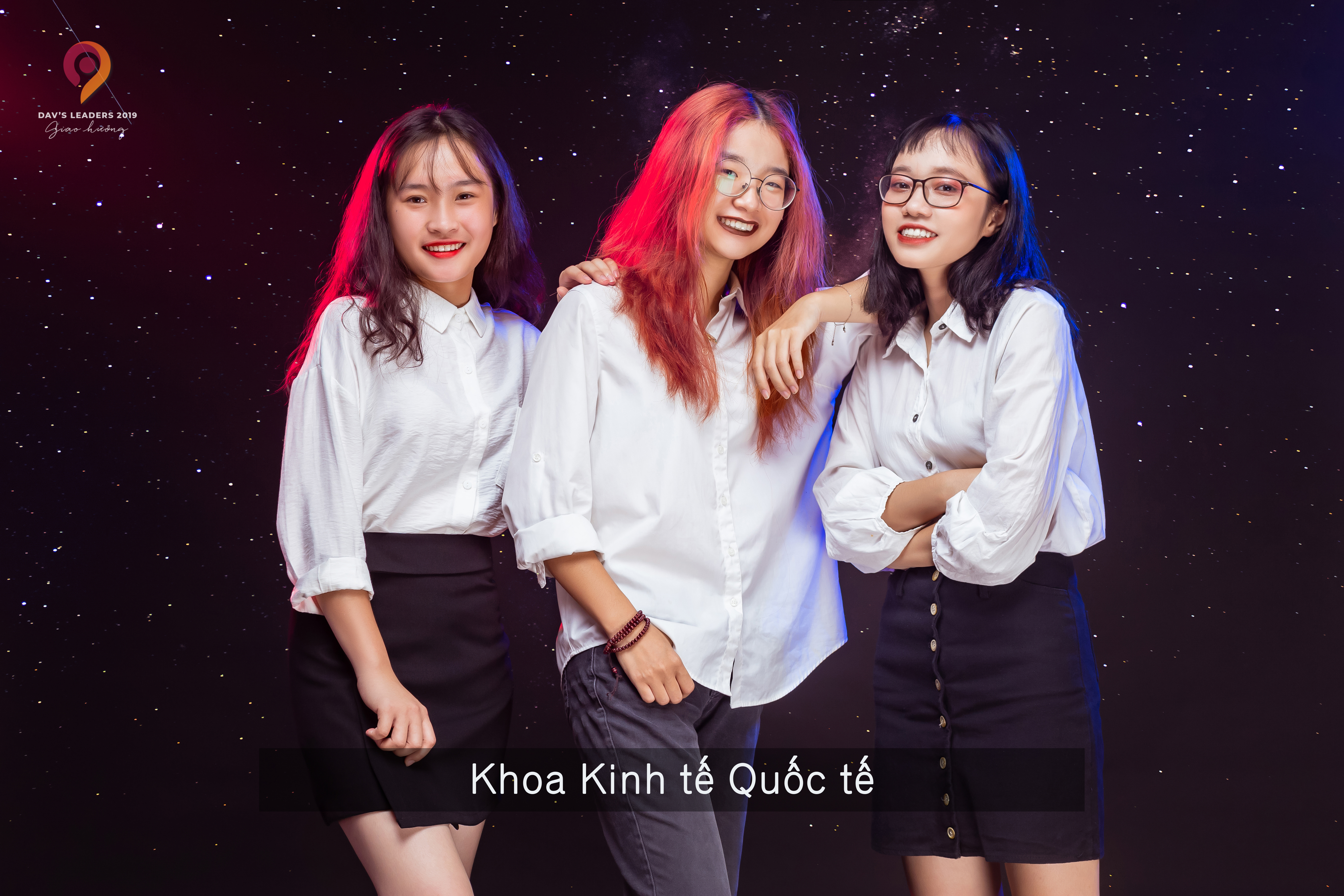Đại diện cho khoa Kinh tế Quốc tế là 3 cô gái xinh xắn nhưng cũng không kém phần tài năng, đó chính là Nguyễn Thị Thùy Dung, Đặng Minh Hằng và Bùi Hương Thảo.