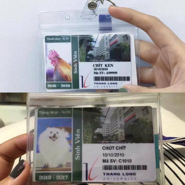 Và mới đây, trên diễn đàn mạng xã hội của trường Đại học Thăng Long, cộng đồng mạng đã không khỏi thích thú trước hình ảnh về những tấm thẻ sinh viên của những con vật nuôi như chó và gà.