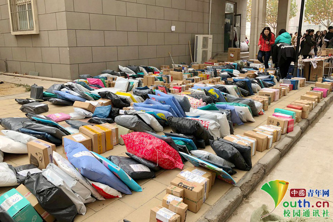 Vì quá nhiều người tập trung mua sắm trong cùng một ngày và địa chỉ gửi về thường là các trường học nên đã xảy ra cảnh, khắp sân trường chất đầy các bưu kiện chuyển phát nhanh.