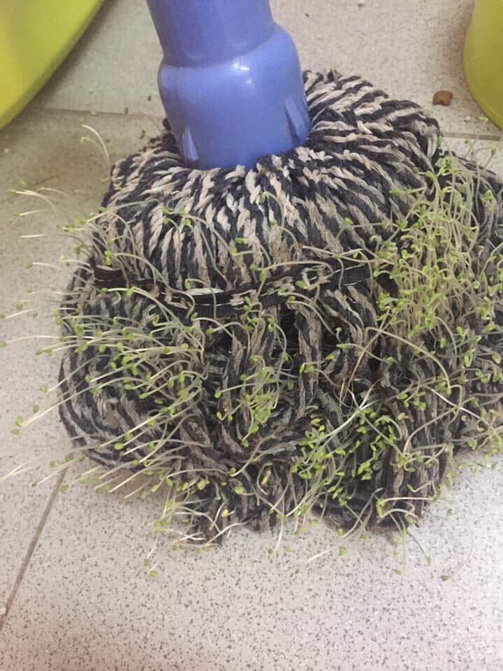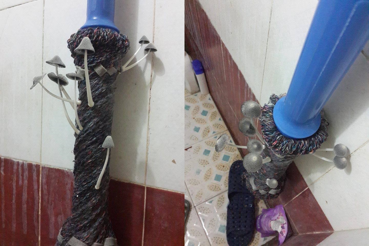 Nấm mọc xung quanh chiếc chổi lau nhà có vẻ như đã quá lâu không được dùng.