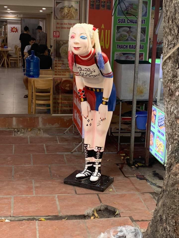 Ông chủ của một quán cơm sinh viên dưới đây là một điển hình, cụ thể, chủ quán cơm này đã đặt 2 bức tượng Joker và Harley Quinn với biểu cảm cực kỳ buồn cười, đặc biệt, bất cứ ai qua lại quán cơm này cũng phải nhìn ngó 2 bức tượng này.