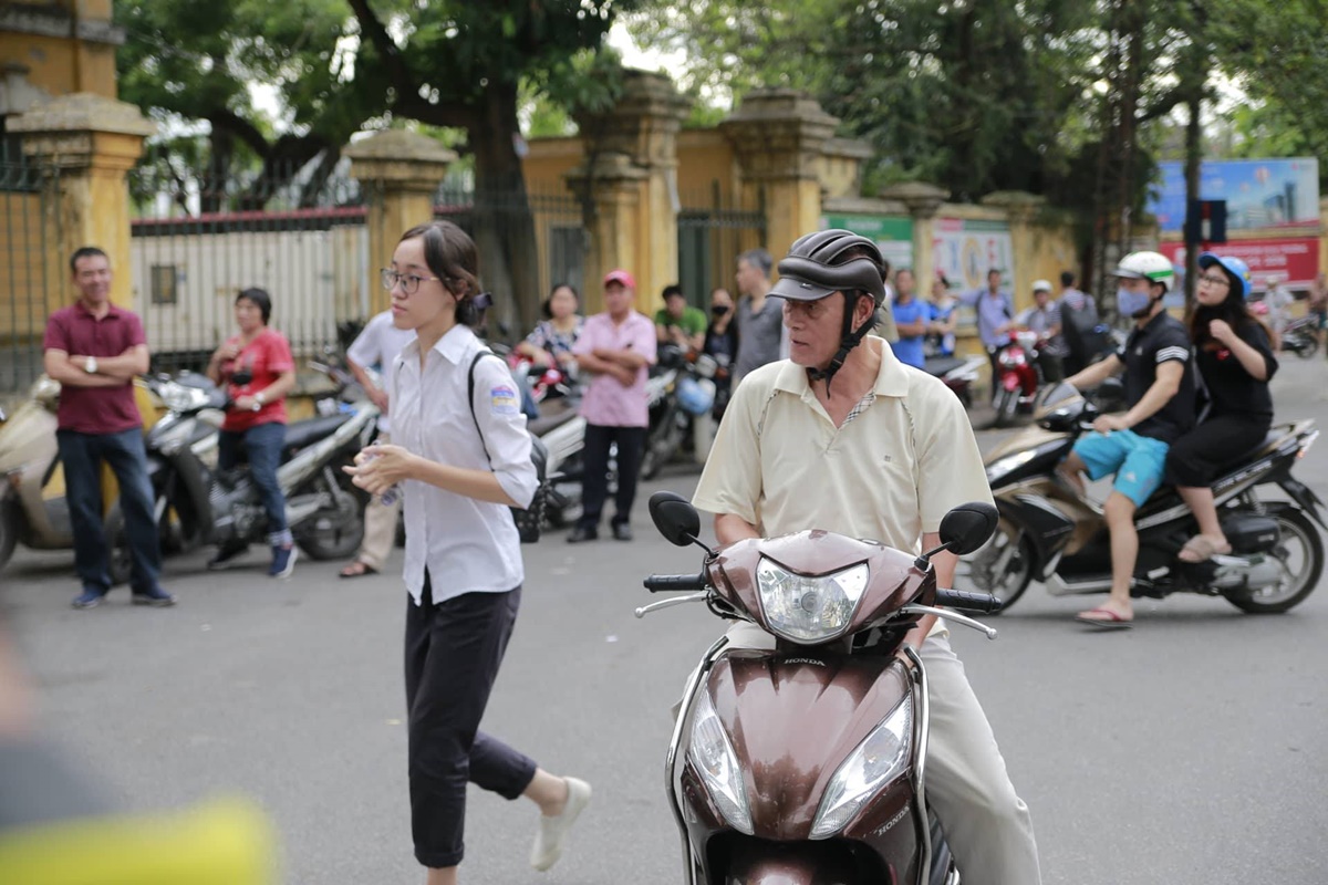 Gần 7h ngày 25/6 - ngày đầu tiên trong kỳ thi THPT Quốc gia, tại điểm thi THPT Chu Văn An, Hà Nội, PV ghi nhận có một vài thí sinh đến sát giờ phát đề 10-15 phút. Cổng lớn của trường đã khép, các em vội vã chạy vào bên trong. Thậm chí, một vài trường hợp quá sát giờ, phụ huynh đã phi xe đến trước cổng nhỏ của trường.