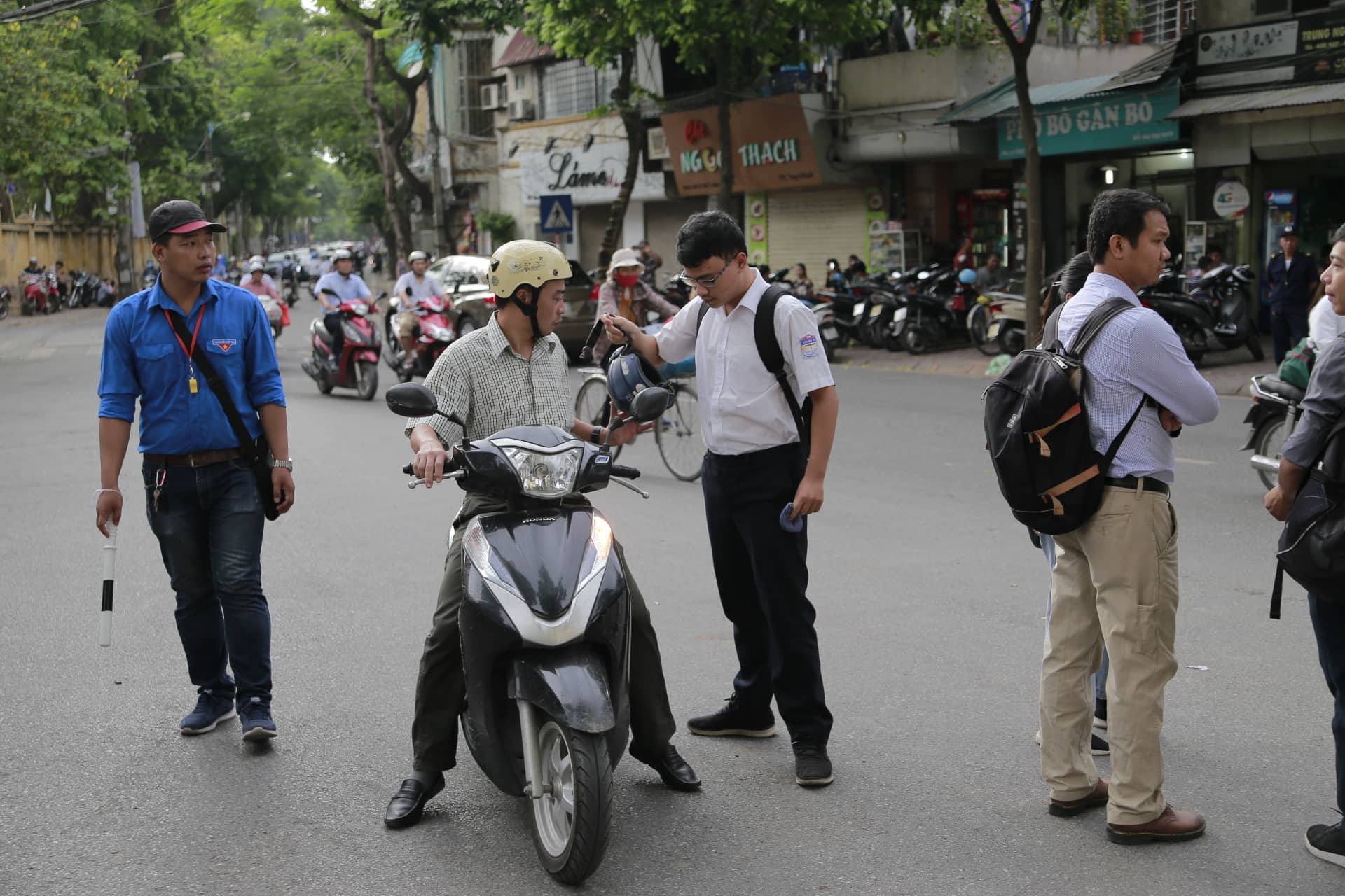 Phụ huynh lao xe vào trước cổng điểm dự thi.