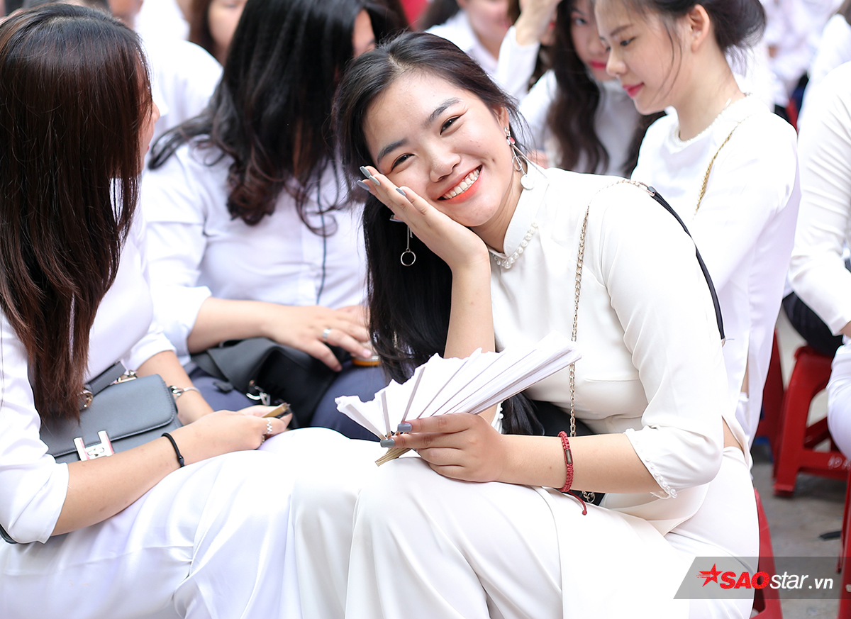 Thời tiết sáng 22/5 khá đẹp nên các nữ sinh thoải mái với kiểu tóc xõa dịu dàng để phù hợp với trang phục áo dài