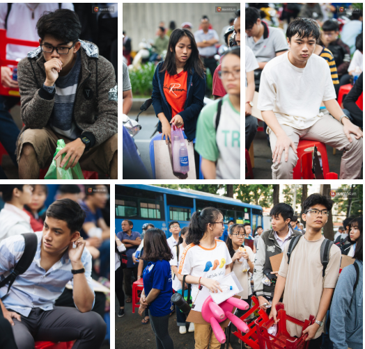 T. K. V. một thí sinh lặn lội từ Vũng Tàu lên cho biết: “Vì không thể mang ghế từ Vũng Tàu lên nên em đành phải thuê ghế của các cô chú trước cổng trường. Thí sinh đông nên hỗn loạn lắm. Ai cũng chen chúc nhau.”