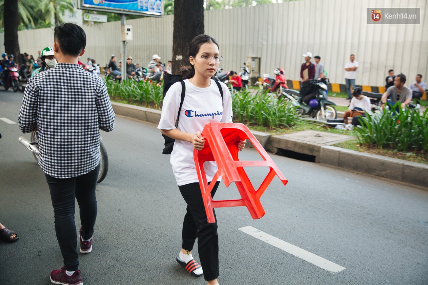 Với những bạn ở tỉnh lên, không thể mang theo ghế hay những ai quên ghế thì yên tâm, đã có ngay đội ngũ bán ghế ngay trước cổng trường với mức giá thuê: 40 nghìn đồng 1 cặp ghế, đặt cọc 60 nghìn!