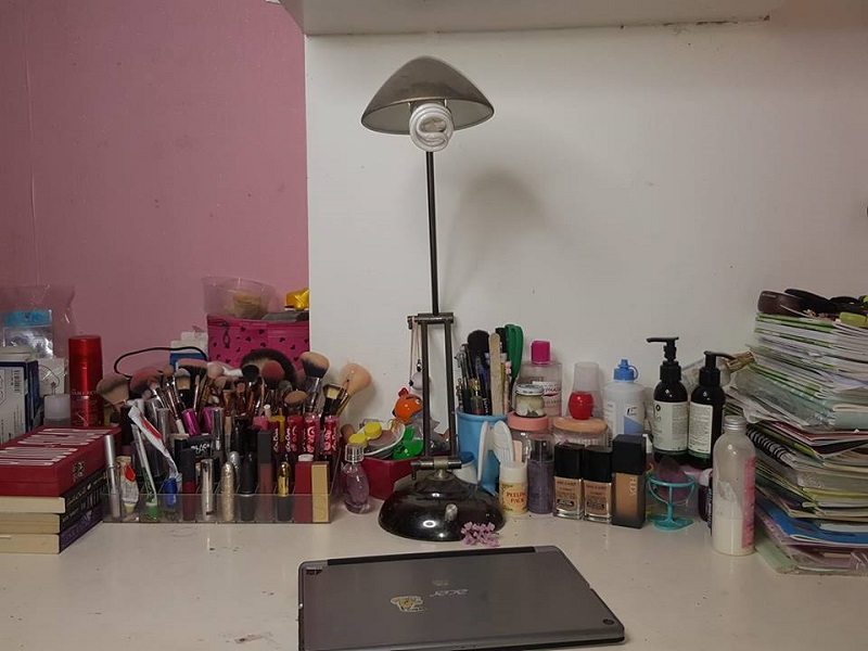 Có nhiều mỹ phẩm thế này chắc cô bạn chủ nhân góc học tập này muốn trở thành thợ trang điểm sao?