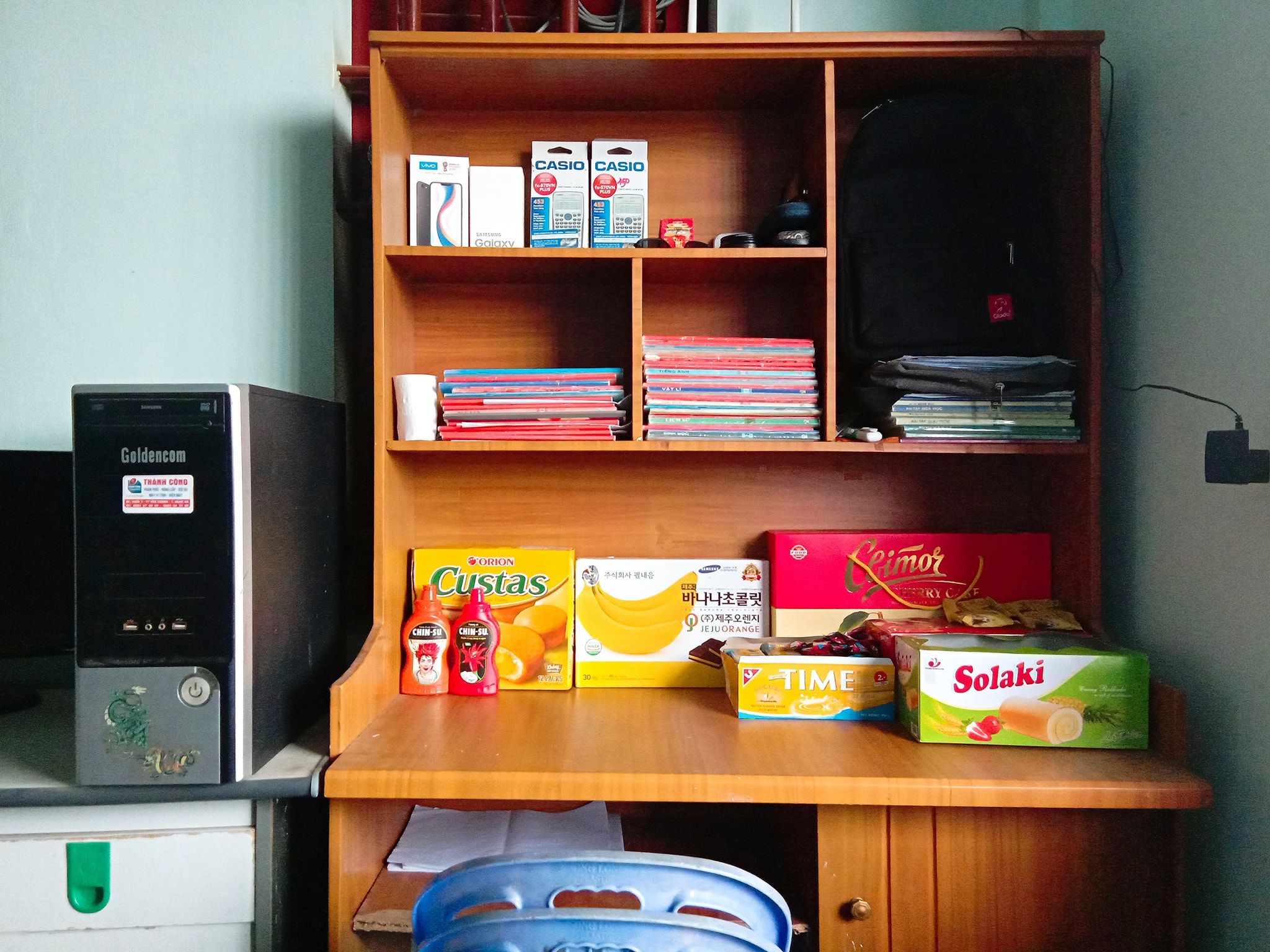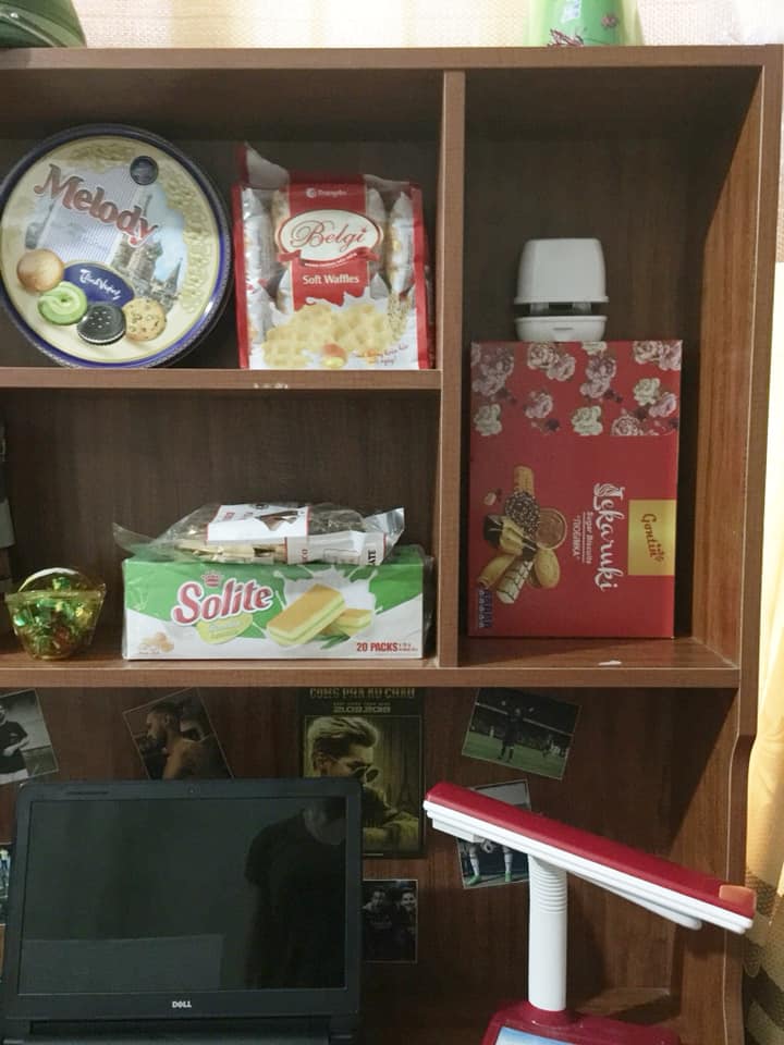 Góc học tập trong mơ của nhiều bạn trẻ khi có nhiều loại bánh kẹo, nước ngọt.