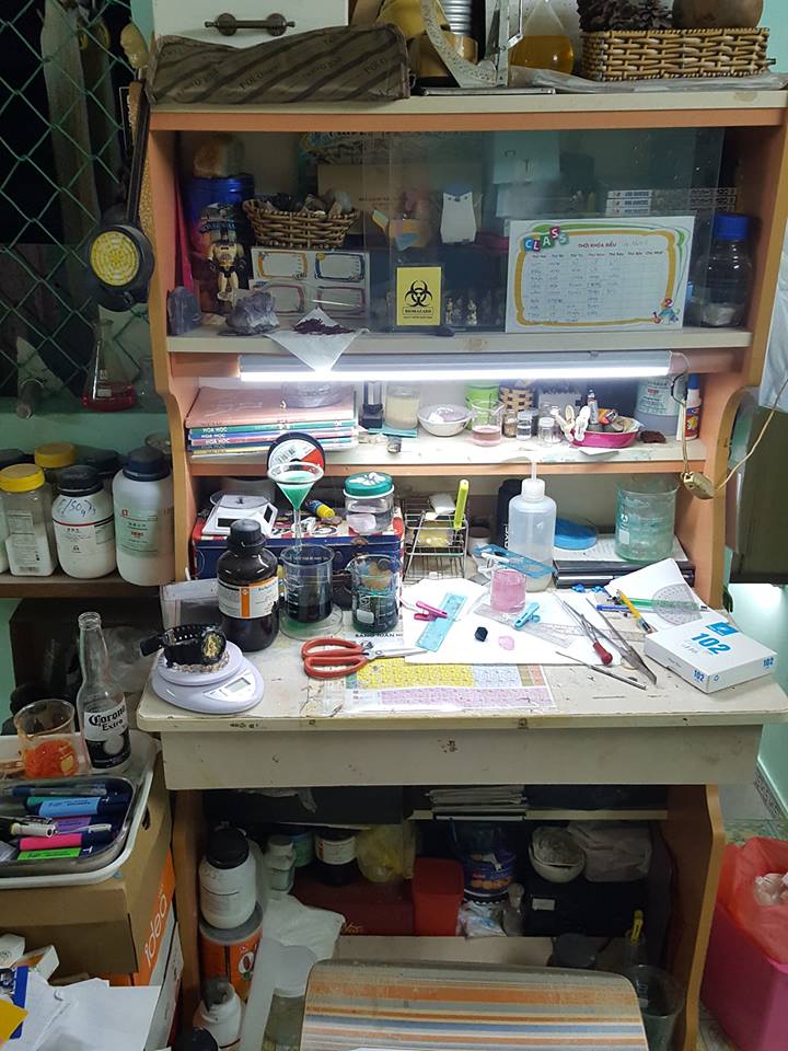 Góc học tập nổi như cồn trên MXH những ngày gần đây khi chứa đầy hóa chất của nam sinh chuyên Hóa.