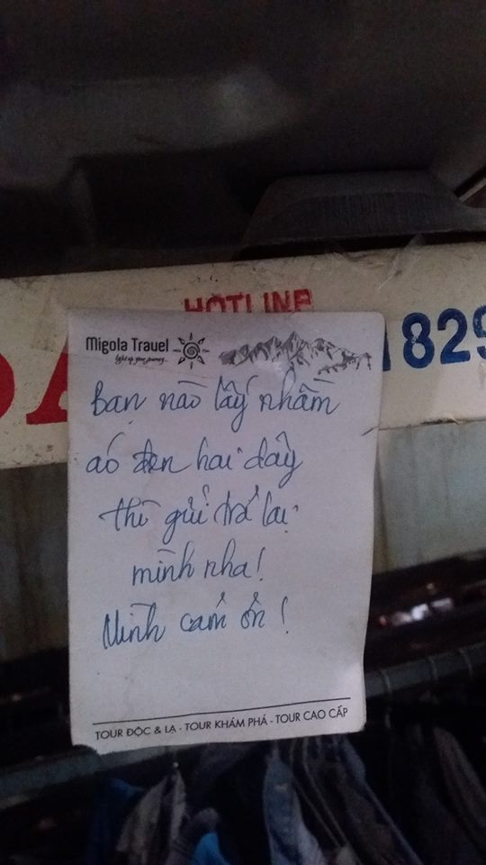 Ngay bên cạnh dòng chữ này, một nạn nhân khác của trò ăn cắp vặt cũng để lại ghi chú: “Ai lấy chăn thổ cẩm của tôi đề nghị treo trả chỗ cũ”.