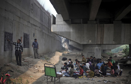 Thầy giáo mở lớp học miễn phí dưới gầm cầu để dạy dỗ những em bé nghèo tại New Delhi
