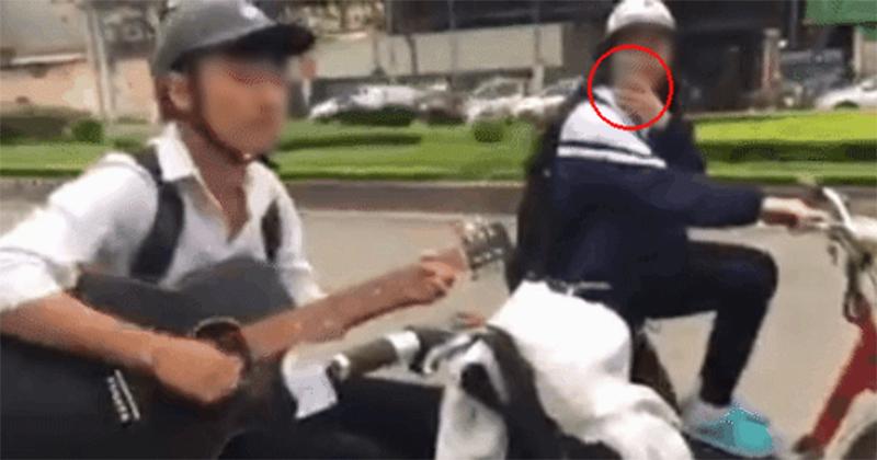 Clip nam sinh buông tay lái ôm đàn đánh giữa đường bị dân mạng ném đá dữ dội. Nguồn: Trường người ta.