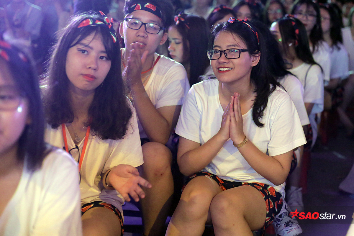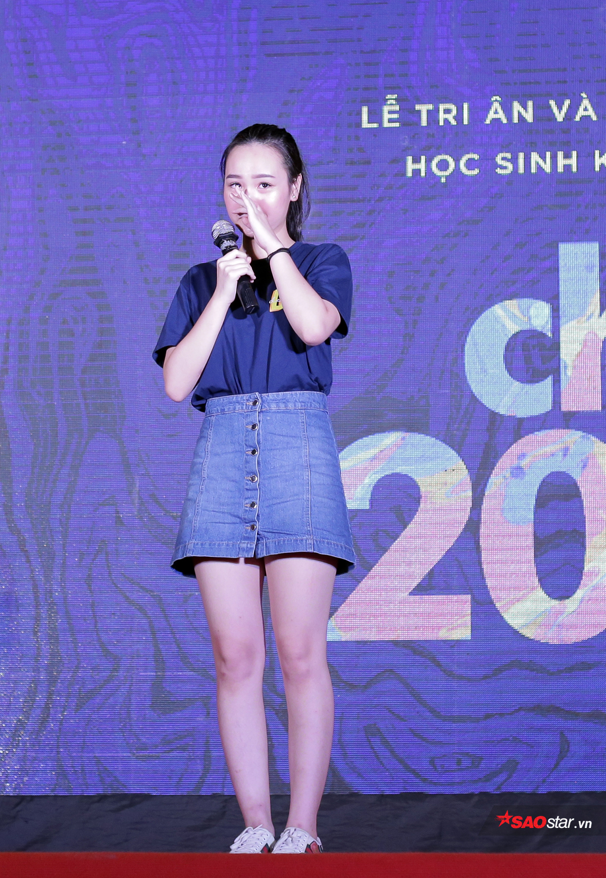 Đại diện các học sinh khối 12 không ngăn nổi giọt nước mắt khi chia sẻ những kỉ niệm của tuổi thanh xuân trên ghế nhà trường