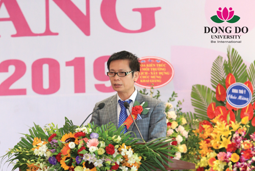 Tiến sĩ Trần Khắc Hùng, Chủ tịch HĐQT đọc diễn văn khai mạc lễ Khai giảng năm học 2018-2019.